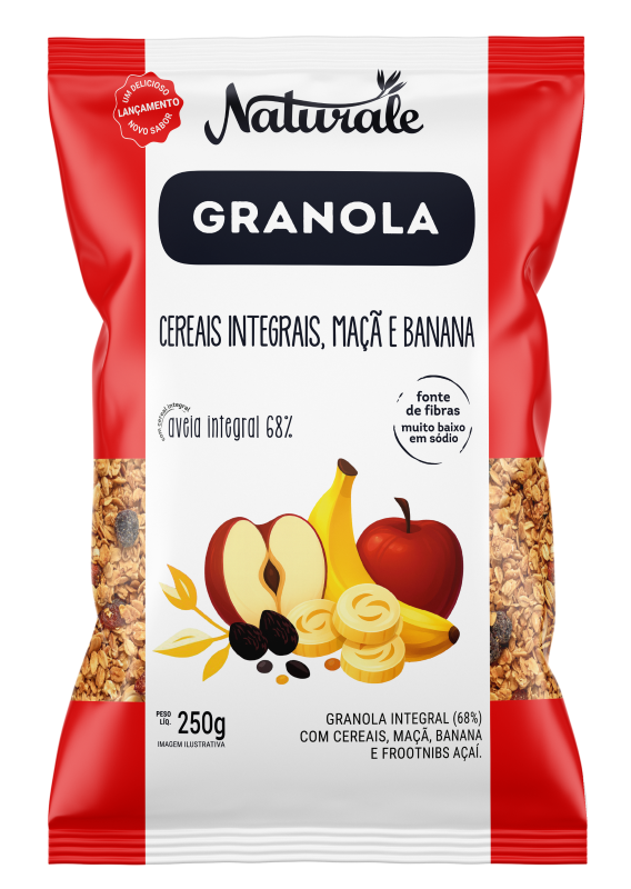 Novo sabor de Granola - Cereais Integrais, Maçã e Banana, em embalagens de 250g e 800g.