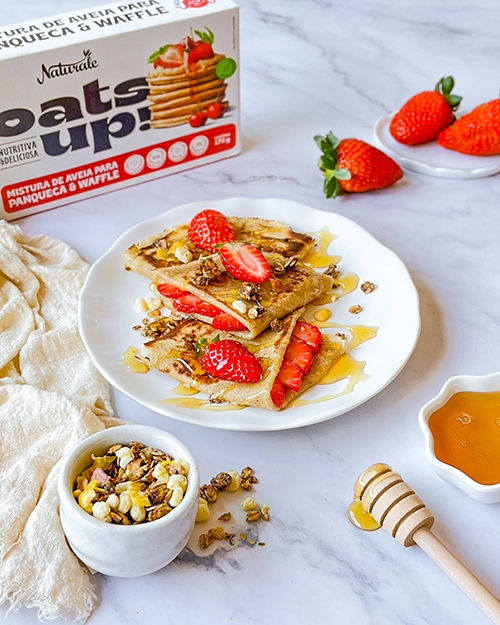 14/05/2023 Crepe Oats up Crepe Oats up Estes crepes são uma ótima opção para um café da manhã ou lanche delicioso e nutritivo. Ingredientes:● 1 xícara (80 g) de mistura Oats up● 1 xícara (240 ml) de leite desnatado ● Receitas Ler artigo