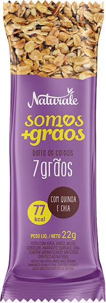 As barras de cereais Naturale contêm ingredientes selecionados para uma alimentação rica e saudável. Seus cereais integrais (mais aveia), frutas e castanhas, proporcionam um sabor surpreendente.