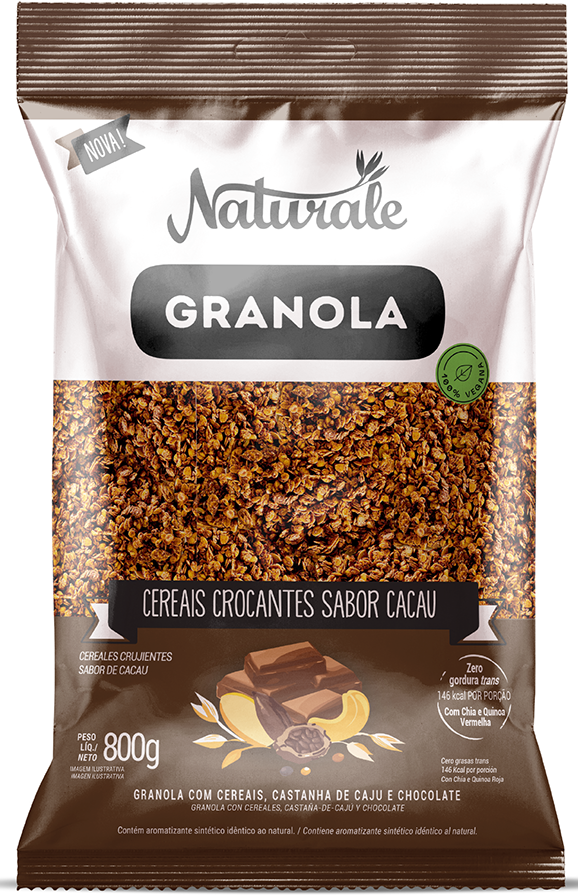 Aveia em flocos grossos, flocos de milho sabor chocolate, açúcar cristal, flocos de arroz sabor chocolate, melado de cana, açúcar mascavo, fibra de trigo, cereal integral de trigo e milho sabor ameixa, gotas sabor chocolate, malte de cevada, cacau em pó, castanha-de-caju, chocolate em pó, linhaça dourada, chia, quinoa vermelha, aromatizantes idênticos ao natural e antioxidante natural tocoferol e extrato de alecrim.